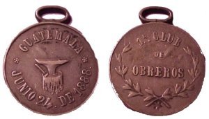 GUATEMALA | Medalla | 1888 | Regular | Medalla Club de Obreros | RRRR | PLATA | 6.30 g | 24 mm | N/A | N/A | N/A | N/A |
